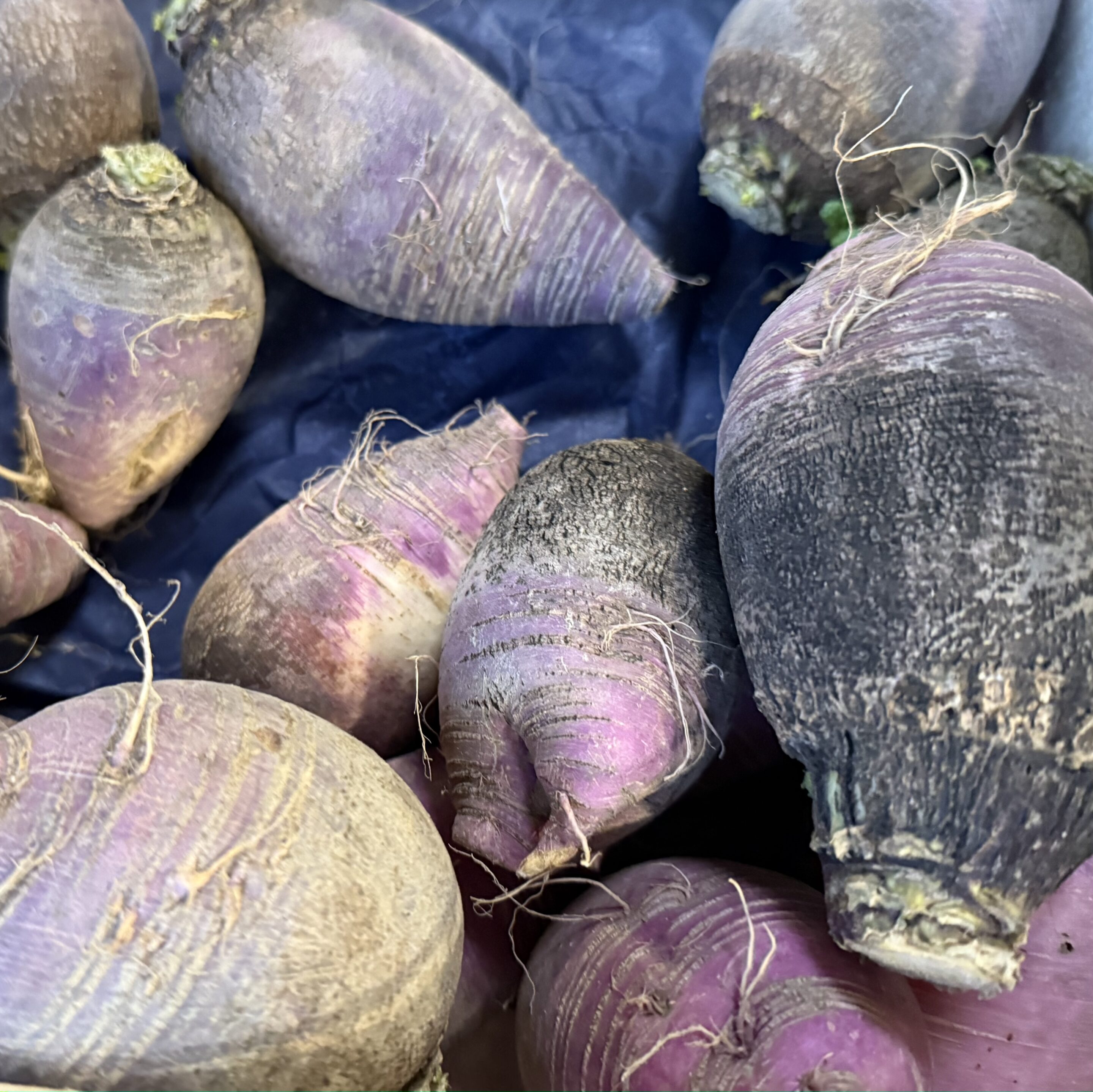 Le radis bleu d’automne et d’hiver est un radis de couleur magnifique. En effet, son épiderme est d’un violet chatoyant, qui réjouira vos pupilles. Il est aussi connu sous son nom allemand de radis « Blauer herbst und winter » qui se traduit par radis « bleu d’automne et d’hiver ». Le semis des graines de ces radis bleu s’effectue de mai à juillet. Sa chair, blanche et ferme est légèrement piquante. Il se mange notamment à la croque au sel ou en rémoulade. Pour les conserver, couper les fanes (qui accélèrent la déshydratation) et stocker les en cave ou en silo. Il est nécessaire que le lieu soit humide (autour des 90%) et frais (entre 1°C et 4°C).